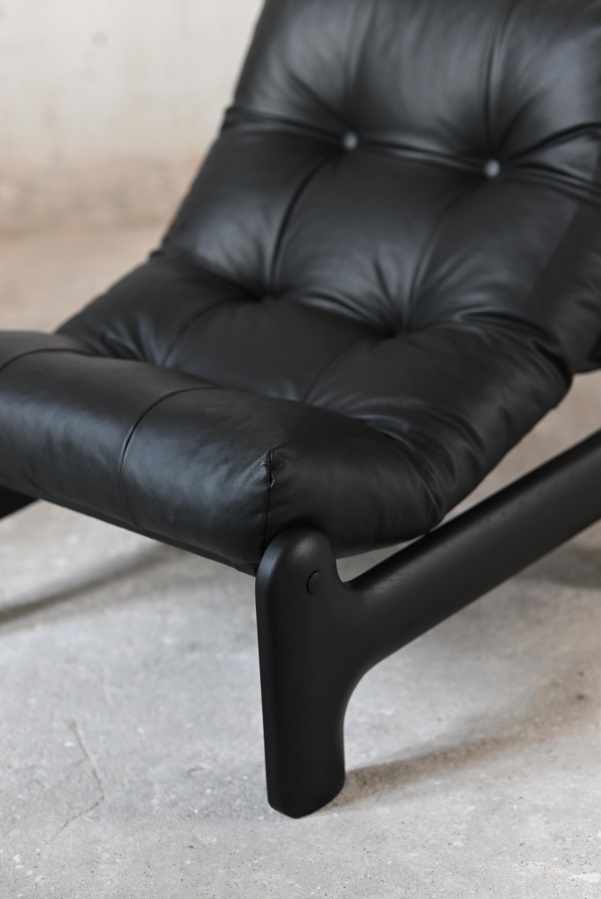 Dodaj odrobinę luksusu i niepowtarzalnego charakteru do swojego wnętrza dzięki temu wyjątkowemu fotelowi BOVOO w stylu vintage. Głęboki, czarny odcień skóry naturalnej i klasyczny design sprawią, że stanie się on centralnym punktem każdego pomieszczenia.
